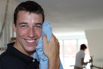 | Schon ein Zebra: THW-Neuzugang Dominik Klein hat ein Bild eines Zebras in seiner Wohnung stehen. | THW-Neuzugang Dominik Klein schleppt seine Möbel aus dem Möbelwagen in seine neue Wohnung, die er Ende Juni in Melsdorf vor den Toren Kiels bezogen hat. | THW-Neuzugang Dominik Klein (rechts) entlädt gemeinsam mit seinem Vater Theo den Möbelwagen. | THW-Neuzugang Dominik Klein kommt beim Schleppen seiner Möbel in seine neue Wohnung, die er Ende Juni in Melsdorf vor den Toren Kiels bezogen hat, ordentlich ins Schwitzen. | |||