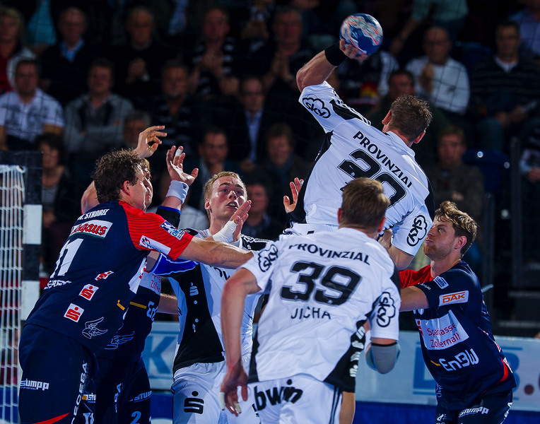 | Die Bank. | Pokalsieger! Christian Sprenger und Filip Jicha. | Pokalsieger! | Julian Poltrock behandelt Magnus Landin Jacobsen. | |||