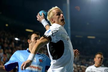 | Johan Pettersson zieht mit einem Sprungwurf ab, im Hintergrund Daniel Brack. | Johan Pettersson setzt zum Torwurf an. | Johan Pettersson reckt jubelnd beide Fäuste in die Luft. | Johan Pettersson wirft. | |||