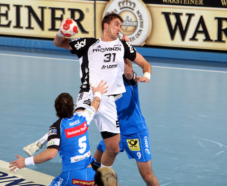 | Blazenko Lackovic. | Auszeit. | Vor dem Anpfiff. | Marcus Ahlm gegen Guillaume Gille. | |||