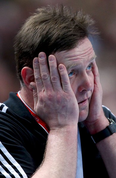 | Großwallstadt Trainer Peter David. | Alfred Gislason. | Wo ist der Ball? | Momir Ilic. | |||