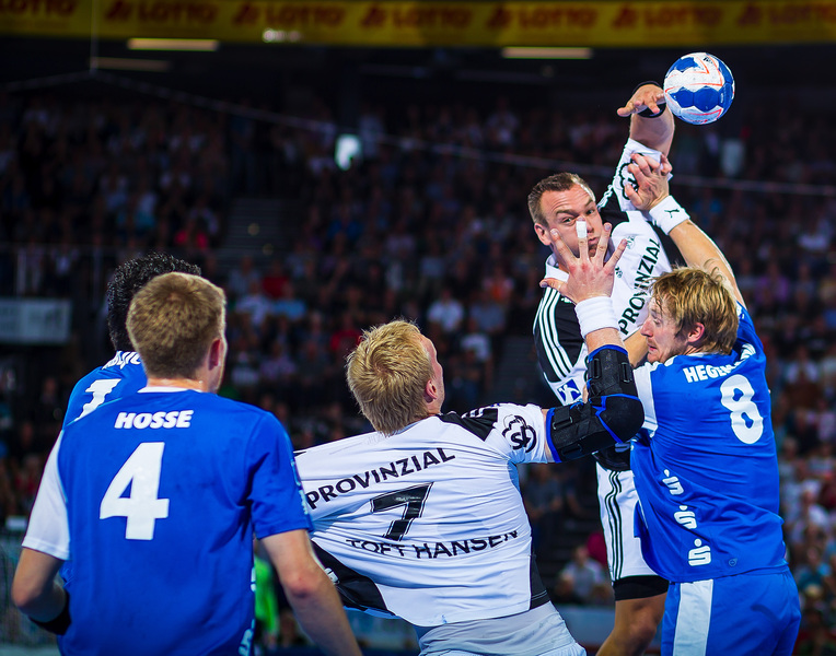 | Spielszene. | THW! | Rasmus Lauge. | THW-Hallensprecher Thomas Lorenzen. | |||