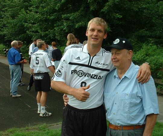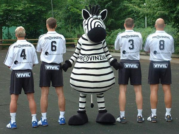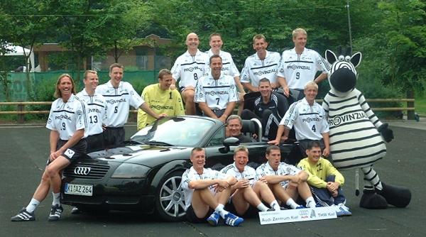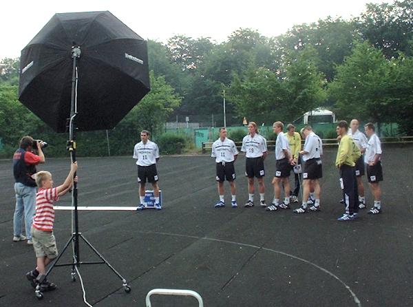| Pitti mit Fan Kurt Sorgenfrei. | Hat da gerade jemand gelacht? | Das aktuelle Mannschaftsfoto 2001/2002. | Das alternative Mannschaftsfoto 2001/2002. | |||