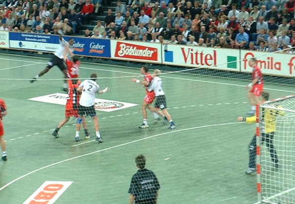 Das Match gegen Nordhorn war die erwartet spannende, knappe Partie vor einer fantastischen Kulisse von fast 10000 begeisterten Zuschauern. Im letzten Pflichtspiel-Auftritt von Magnus Wislander in der immer ausverkauften Ostseehalle ging der THW nach Gegenstoßtor Pettersson und Rückraumtreffer von Fis mit 2:1 in Führung (5.).