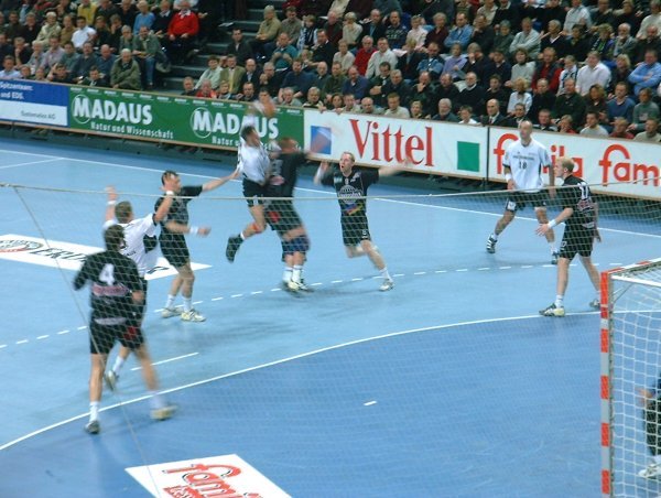 Nach 0:1-Rückstand durch Bengs deutete sich schon mit dem 1:1-Ausgleich durch Bjerre (3.) nach schöner Kombination an, daß der THW spielerisch gut drauf war. Die Zebras, von Beginn an engagiert bis in die Haarspitzen und hellwach, erhöhten durch Pettersson (Strafwurf zum 2:1, 3.), Bjerre (aus dem Rückraum zum 3:1, 5.) und Preiß (zweite Welle vom Kreis) auf 4:1 (6.). Derweil hatte Wallau mit der sicheren 6:0-Deckung des THW große Probleme und vergab viele Bälle - die gefürchteten Rückraumschützen der Hessen kamen nicht zur Entfaltung.