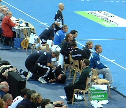 Nach ausgeglichenem Beginn (2:2, 6.) dann Schrecksekunde für den THW: Kapitän Stefan Lövgren fiel unglücklich auf den Steiß und mußte minutenlang behandelt werden. So kam Demetrio Lozano zu einem unerwartet frühen Comeback (siehe Sonderbericht). Doch zunächst sorgte sein Landsmann Jon Belaustegui für