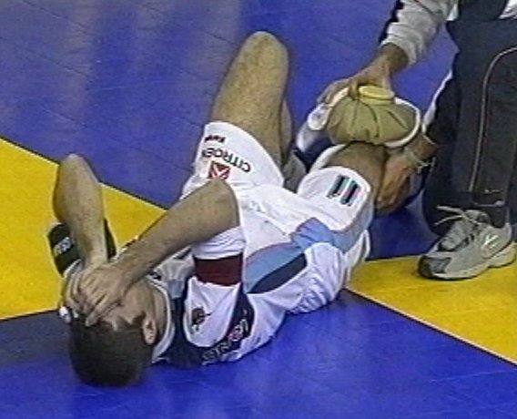 Es passierte in den Schlussminuten des Krimis zwischen Slowenien und Serbien & Montenegro. Beim Torwurf aus der Bewegung heraus, bringt ein gemeiner Stoß Pungartnik aus dem Gleichgewicht. Übeltäter ist Danijel Andjelkovic. Der Wahl-Kieler verkantet das Bein und bleibt mit schmerzverzerrtem Gesicht an Rande der Bande liegen.