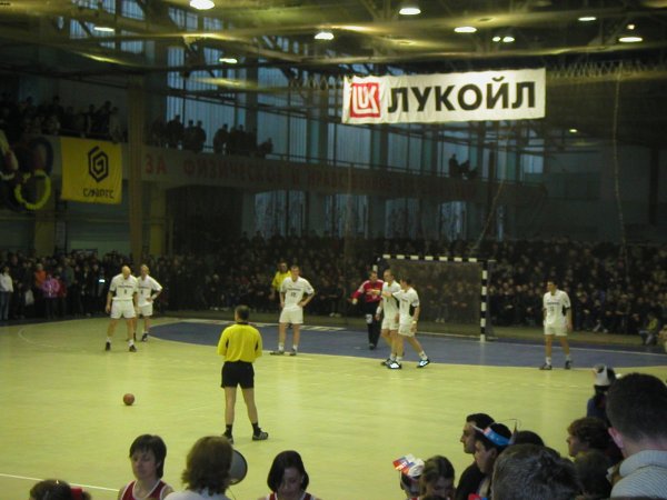 | 11:32 | -. | --:-- | Die Schiedsrichter sind die Mazedonier Kamisevski / Nikolovski. Die Spartak-Sporthalle in Astrachan fasst 1500 Zuschauer. Die Halle wird definitiv komplett gefüllt sein, denn Dynamo wird zunächst alle Karteninhaber einlassen, und dann zum Spielbeginn den in Schlangen draußen wartenden Fans freien Eintritt gewähren. Schon jetzt ist die Halle - mit einem harten Betonboden - sehr laut. Marcus Ahlm wird definitiv nicht spielen können, aber Noka Serdarusic wird trotzdem mit einer 6:0-Deckung beginnen. |