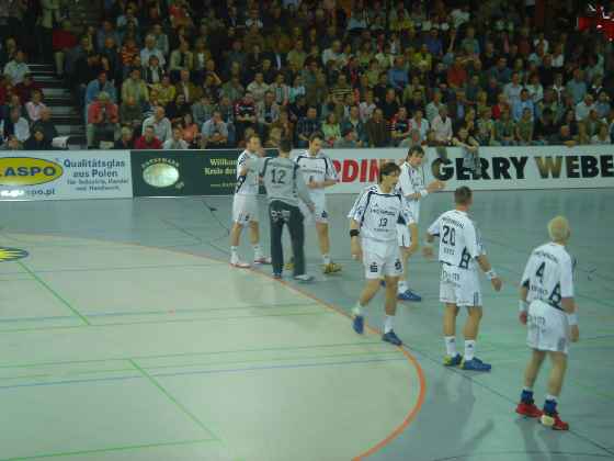 Diverse Schlüsselszenen prägten das Spiel. Die erste geschah in der elften Minute, als der von der SG Flensburg ausgeliehene kroatische Weltmeister Goran Sprem statt zum 10:5 THW-Torhüter Henning Fritz traf, genauer ausgedrückt, das rechte Bein des Welthandballers des Jahres. Zweimal Pettersson, Lundström und Zeitz glichen innerhalb weniger Uhrzeigerumdrehungen zum 9:9 aus. Das Zeichen zur Wende? Pustekuchen. Lübbecke ließ nicht locker, machte weiter Dampf, verwandelte die Halle in einen brodelnden Kessel - und blieb vorn. Auffällig vor allem Tobias Schröder und Rolf Hermann im Rückraum, Sprem vernaschte die THW-Abwehr von Linksaußen und per Tempogegenstoß, außerdem gab Kreisläufer Patrick Fölser keine Ruhe. Das 19:18 zur Halbzeit entsprach dem Spielverlauf.