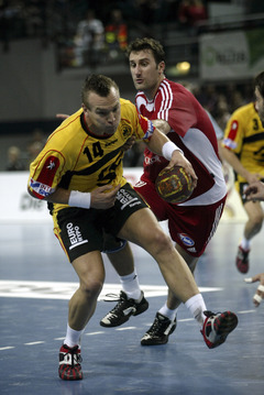 | QS-Supercup: Zeitz wird von Balic attackiert. | QS-Supercup: Karabatic passt. | QS-Supercup: Karabatic im Kampf um den Ball. | QS-Supercup: Zeitz und Hens. | |||
