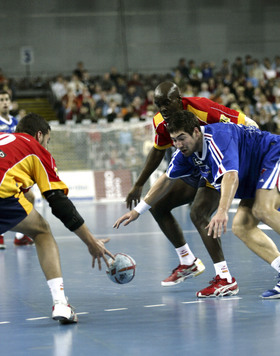 Im ersten Spiel der Gruppe B besiegte Frankreich Weltmeister Spanien mit 28:26 (10:14). Überragender Spieler war Nikola Karabatic vom THW Kiel, der mit acht Toren großen Anteil daran hatte, dass der WM-Dritte trotz eines Fehlstarts (1:7) am Ende noch gewann.