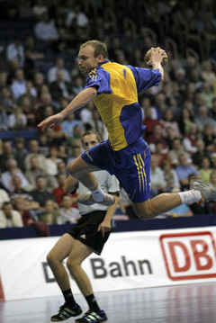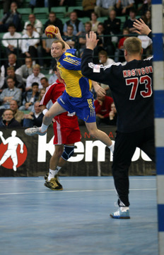 | QS-Supercup: Marcus Ahlm setzt sich durch. | QS-Supercup: Henrik Lundström. | QS-Supercup: Nikola Karabatic spielt ab. | QS-Supercup: Nikola Karabatic wird von Martin Boquist angegriffen. | |||