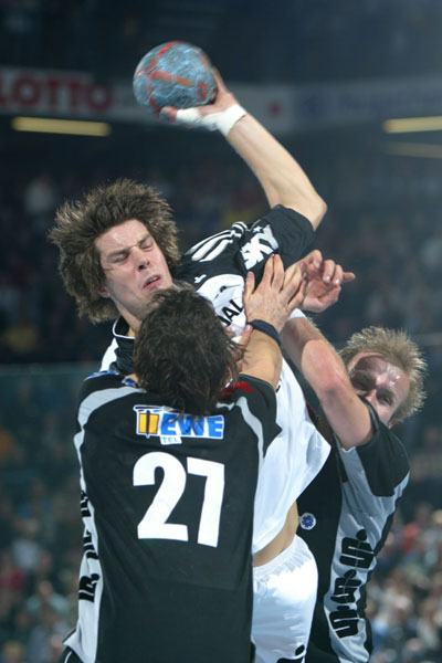 Die Zebras hatten die Partie fest im Griff, auch mit dem so genannten "zweiten Anzug", den Trainer Noka Serdarusic zunächst aufs Parkett der Ostseehalle schickte. Aber was heißt "zweiter Anzug", wenn Spieler wie Frode Hagen, Pelle Linders, Viktor Szilagyi oder Adrian Wagner ins Team rücken. Allesamt hätten in fast jedem anderen Bundesligateam ihren Stammplatz sicher. 11:5 hieß es nach 15 Minuten. Als treffsicher erwiesen sich vor allem Vid Kavticnik, Kim Andersson und Nikola Karabatic. Es folgte ein kleiner Hänger, der von der 22. Minute mit der Hereinnahme von Lövgren, Ahlm und Lundström schnell gerade gebogen wurde.
