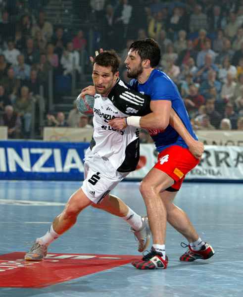 Besonders in der ersten Viertelstunde perlten die Hausherren immer wieder an der offensiven Deckung der Hamburger ab, die nur eines im Sinn hatte - den Spielfluss zu zerstören. Das Konzept ging auf. Während Stefan Lövgren & Co sich die Zähne ausbissen, zogen die flotten Gäste auf 9:4 (12.) davon. Dass die Zebras in dieser Phase überhaupt noch im Rückspiegel des HSV zu sehen waren, verdankten sie Henning Fritz. Wie einst im WM-Halbfinale 2003 in Portugal, als Fritz den Franzosen Bertrand Gille entnervte, gewann der THW-Torhüter auch diesmal das Duell gegen den HSV-Kreisläufer. "Bertrand kam einfach zu frei zum Wurf", meinte Mannschaftskollege Thomas Knorr, "das ist er nicht gewohnt."
