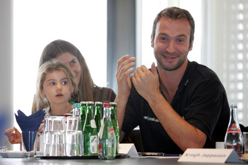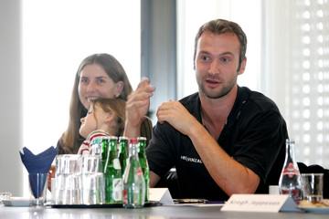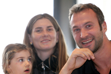 Pressekonferenz 2006: Thierry Omeyer mit Frau und Tochter.