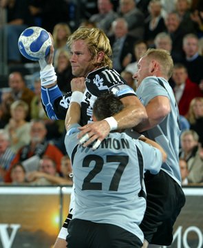 Die Zuschauer bekamen nun Kieler Tempohandball vom Feinsten geboten. Im Angriff klappte zwar nicht alles, aber so bekamen andere Spieler immer wieder Gelegenheit, sich auszuzeichnen. Zum Beispiel die beiden Torhüter Omeyer und Mattias Andersson, die Gegenstöße entschärfen konnten. Oder Christian Zeitz und Nikola Karabatic, die nach einem missglückten Torversuchs von Dominik Klein den Ball doch noch durch eine artistische Coproduktion im Gästekasten unterbringen konnten.