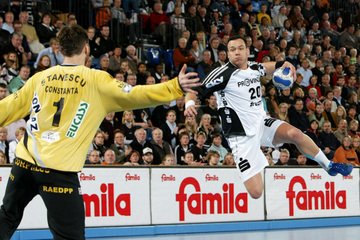 Die Dänen mussten allerdings nicht lange zittern. Schon nach 20 Minuten war der Anfangsschwung der Kieler Gäste verpufft. Bis zum 8:9 in der 12. Minute lagen die athletischen Rumänen stets knapp vorn, dann kam der THW-Express auf Touren. Christian Zeitz schaffte nach einem groben Foul von Ivan Smigic mit Wut im Bauch den ersten Gleichstand (9:9), und in dem Maße wie das kleine Häufchen der verbliebenen sieben Kieler Feldspieler mit mannschaftlicher Geschlossenheit das Tempo anzog und Tore am Fließband produzierte, ergriff das Selbstvertrauen bei Constanta die Flucht. Die Fehlerquote schnellte in die Höhe, der Respekt vor dem THW wuchs zum Riesen heran. "Wir haben nicht mehr an uns geglaubt", sagte Torhüter Rudi Stanescu, noch einer der Besten im blauen Gäste-Dress. Kiels Taktik war dabei zwangsläufig simpel. Weil Trainer Noka Serdarusic nur einen Spieler zum Wechseln hatte, kam Dominik Klein bei Angriffen im halblinken Rückraum zum Einsatz, ging es in die Defensive, tauschte der THW-Youngster den Bankplatz mit Pelle Linders.