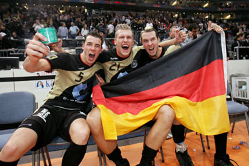 Der Groll des Lemgoer Kreisläufers ist zu diesem Zeitpunkt aber längst verflogen. Diese Partie packt alle. Joel Abati, Frankreichs bester Akteur an diesem Abend, trifft per Siebenmeter zum 30:30. Die Spannung ist greifbar, fühlbar, unerträglich. Noch zwei Minuten. Brand wirft seinen Youngster Lars Kaufmann für den enttäuschenden Pascal Hens ins Feuer. Der Wetzlarer kommt und trifft zum 31:30. Jetzt ist alles möglich, dann aber der Schock: Zeitstrafe für Andrej Klimowets, die DHB-Auswahl bleibt bis zum Schlusspfiff in Unterzahl. Michael Guigou setzt sich auf Linksaußen durch: 31:31. Gegenzug, Kaufmann prallt auf drei Franzosen: Strafwurf, Markus Baur behält die Nerven und verwandelt auch seinen vierten Siebenmeter gegen Thierry Omeyer. 78:55 Minuten gespielt, Karabatic-Fehlpass auf Guigou, Ballbesitz Deutschland, aber Jansen vertändelt den Ball bei Manndeckung, Fritz ist aus dem Tor und Guigou wirft den Ball ins leere Gehäuse. Aber die Schiedsrichter winken ab. Sie hatten vorher Foul gepfiffen, die Franzosen protestieren. Noch 14 Sekunden, Henning Fritz pariert zweimal großartig gegen den wurfgewaltigen Narcisse. Aus, aus, aus, Deutschland ist im Finale!
