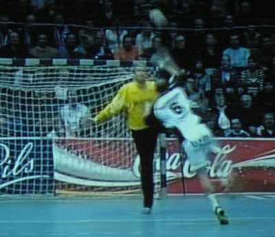 So starteten die Kieler mit dem Rücken zur Wand. Doch aggressiv in der Abwehr und beweglich im Angriff hatten sie schnell das Heft des Handelns in der Hand. Dass der TBV in der ersten Halbzeit ständig auf Tuchfühlung blieb, lag vor allem an dem 37-jährigen Christian Schwarzer, der seine WM-Form konserviert hat und die Kieler Hinterreihe in Atem hielt. Ohne Fortune blieb dabei THW-Schlussmann Thierry Omeyer, Serdarusic beorderte Mattias Andersson schon nach zwölf Minuten ins Geschehen. Überragender THW-Spieler war der "Chef" persönlich. Stefan Lövgren führte klug Regie, kämpfte wie ein Löwe, traf zehn Mal aus allen Lagen und sorgte auch in der Schlussphase, als den Kielern der Erfolg noch aus den Fingern zu gleiten drohte, für die entscheidenden Treffer in dieser Partie.