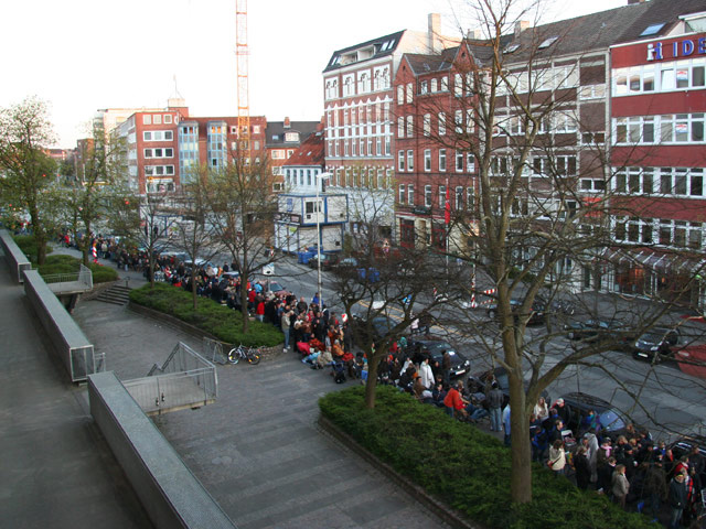 und damit zweieinhalb Stunden vor Kassenöffnung, reicht die Schlange vor der