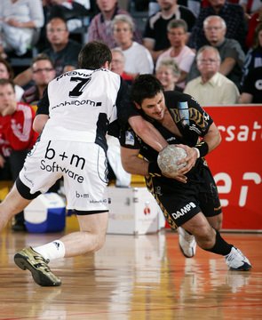 Hochmotiviert legten die Hausherren los und führten nach fünf Minuten bereits mit 7:2. Ein Dan Beutler, durch dessen Adern Lava zu fließen schien, hielt wie ein Teufelskerl. Egal, ob Vid Kavticnik, Christian Zeitz oder Dominik Klein vor ihm auftauchten - der Schwede legten mit unglaublichen Reflexen den Grundstein für die Führung der Hausherren, die in der Campushalle in zuvor 16 Liga-Heimspielen lediglich einen Punkt (31:31 gegen Lemgo) abgegeben hatten. Die Flensburger mussten zwar wie in den Champions-League-Endspielen auf ihren Kapitän Sören Stryger (Wadenprobleme) verzichten. Aber diesmal legte der Tabellen-Dritte eine ganz andere Einstellung an den Tag. Engagiert und mit großer Leidenschaft versuchten Michael Knudsen & Co den torgefährlichen Kieler Rückraum auszuschalten. Mit Erfolg. Zumal Kiels "Marathon-Mann" Nikola Karabatic müde wirkte und Christian Zeitz einen rabenschwarzen Tag erwischte. Beschimpft von den SG-Fans, die ihm seinen "Kopftreffer" gegen Jan Holpert aus dem Champions-League-Hinspiel nicht verziehen hatten, zeigte der Weltmeister Nerven. Für seine fünf Feldtore benötigte der 26-Jährige immerhin 16 Versuche.