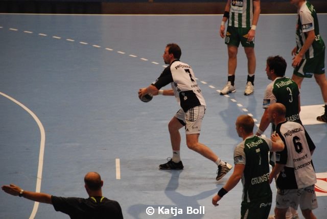 abwechselnd Kreisläufer Grundsten - der vom HSV Hamburg umworben sein soll - und