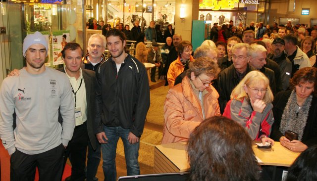 In rekordverdächtigen 38 Minuten waren dann aus diesem zusätzlichen Kontingent alle Sitzplätze ausverkauft und 55 Minuten nach dem Vorverkaufsstart sogar die 4.300 Plätze insgesamt. Da staunten in Kassel die beiden autogrammeschreibenden MT-Spieler Spyros Balomenos und Grigorios Sanikis mit offenen Mündern. Den griechischen Nationalspielern sind große Kulissen gewiss nicht unbekannt. Dass aber nun auch die Fans dieser Region vermehrt ihr Herz für die Spiele ihrer MT zeigen, ist für sie absolut beeindruckend. "Unglaublich, das ist ja der helle Wahnsinn, was hier abgeht", sprudelte es aus Grigorios Sanikis heraus. "Ich denke, das wird meinen Genesungsprozess beschleunigen", so der Rekonvaleszent mit einem Augenzwinkern.