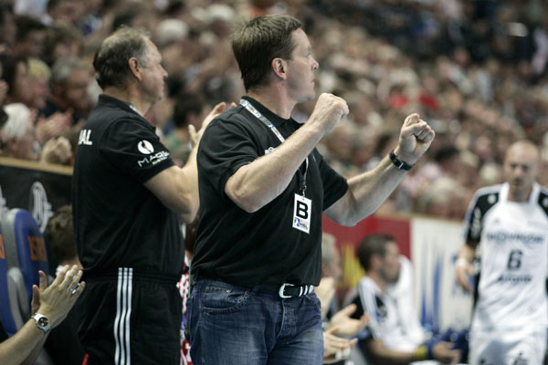 Letzte Woche hatten wir fast alles falsch gemacht: Alle Spieler waren nervös, wir hatten vorne zu langsam gespielt und hinten nie zugefasst. Wir hatten danach normal weitergearbeitet und in Balingen bereits eine Leistungssteigerung gezeigt. Heute stand die Abwehr gut und ein guter Omeyer dahinter. Mein Team hat sich gut präsentiert, auch wenn Magdeburg eine klasse Mannschaft hat.[auf die Frage, ob der SC Magdeburg ihm heute leid getan hätte:]
