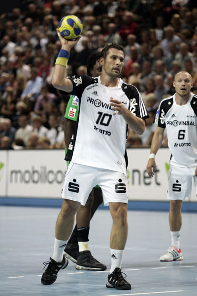 Man sah den Gästen, die auf Abwehrchef Steffen Stiebler verzichten mussten, das gewachsende Selbstvertrauen mit zuletzt saisonübergreifenden 24:4 Punkten in der Anfangsphase auch an: Mit Allrounder Bennet Wiegert auf der Spielmacherposition entwickelten die Gäste zunächst variable Angriffe, in denen Linkshänder Rojewski Thierry Omeyer zweimal düpieren konnte.