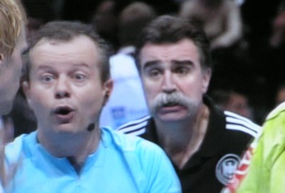 Hens' Zorn war nachvollziehbar, sein Chef machte dem aufgestauten Ärger mit Furcht erregender Pose Luft. So aufgeregt hat wohl noch niemand den Bundestrainer erlebt. Wutentbrannt stapfte Heiner Brand auf das Spielfeld, hängte sich als Schattenmann mit erhobener Faust und der Mimik eines bitterbösen Waldschrates an die Fersen der Auslöser der Szenen, die Schiedsrichter. Dann besann er sich, trottete total enttäuscht zur Bank zurück. Er habe noch nie in seinem Leben jemanden geschlagen, sagte Brand später. "Das wollte ich natürlich auch heute nicht. Aber ich musste mich irgendwie abreagieren."