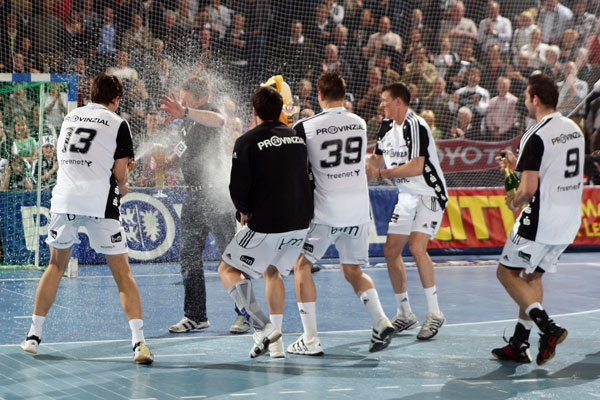 Letztlich stand ein niemals gefährdeter, insgesamt Kräfte schonender 36:28-Erfolg auf der Habenseite des THW Kiel, ehe die "dritte Halbzeit" eingeläutet wurde. Eine Sekt- und Bierdusche für den auch vom Publikum umjubelten Erfolgstrainer Alfred Gislason und schwarzes, weißes und goldenes Konfetti während des Shootings des obigatorischen Meisterfotos durften nicht fehlen. Jedoch: Die Feier fiel kurz aus, denn noch will der THW zwei weitere Titel gewinnen, und das Halbfinal-Hinspiel in der Champions League gegen die Rhein-Neckar Löwen steht bereits am kommenden Sonntag auf dem Spielplan.