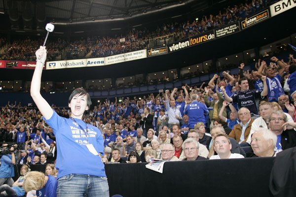 Der Gummersbacher Fanblock ist außer sich: Bei der Finalrunden-Premiere