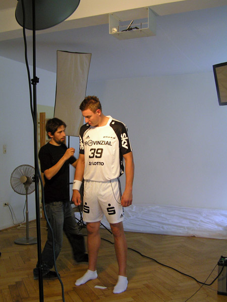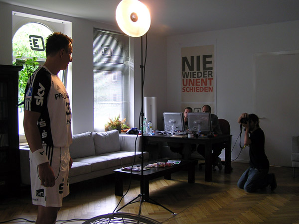 Zwei Spieler, Aron Palmarsson und Hendrik Pekeler, hatten schon die Tage zuvor den Weg in die Agentur gefunden, weil sie seit dem heutigen Tag mit ihren Jugendnationalmannschaften bei der Weltmeisterschaft in Tunesien um den Titel spielen. Die zweite Hälfte des Teams trifft sich am morgigen Sonntag fürs offizielle Shooting.