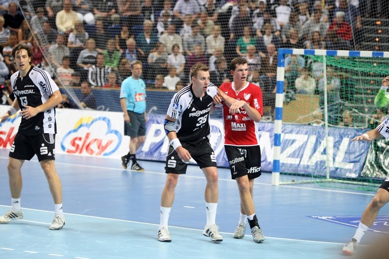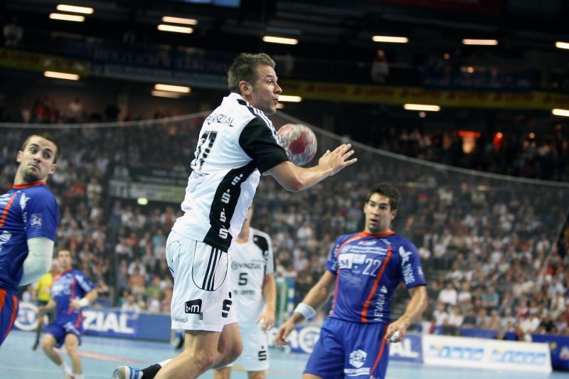 Der ambitionierte französische Abonnementmeister startete furios, besonders der im rechten Rückraum eingesetzte Vid Kavticnik trumpfte zunächst groß auf. 5/2 Treffer gelangen dem Slowenen allein vor der Halbzeitsirene, durch die sich Montpellier über 6:3, 8:4 und 11:6 bis zum 13:7 deutlich absetzen konnten. Milutin Dragicevic gelang mit seinem zweiten Treffer noch der Anschluss zum 8:13, ehe die Seiten gewechselt wurden.