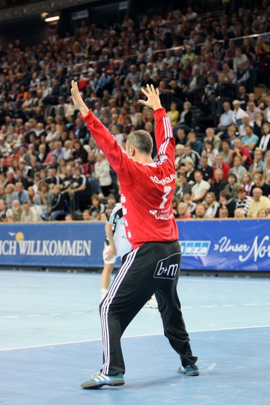 Mit Nikola Karabatic, vom THW für über eine Million Ablöse nach Montpellier gewechselt, verabschiedete das Kieler Publikum einen Mann, der vier Jahre Hallen-Held war, wohl endgültig. Nach freundlichem Empfang brachte Karabatic ehemalige Mitspieler und das Publikum mit harter Gangart und abfälligen Gesten gegen sich auf. Die Quittung: Bei jedem Ballkontakt erntete der 25-Jährige ein gellendes Pfeifkonzert. Ihm hätten die Pfiffe nichts ausgemacht, sagte Karabatic, "das berührt mich nicht." Und: "Ich habe Kiel nicht mehr im Kopf."
