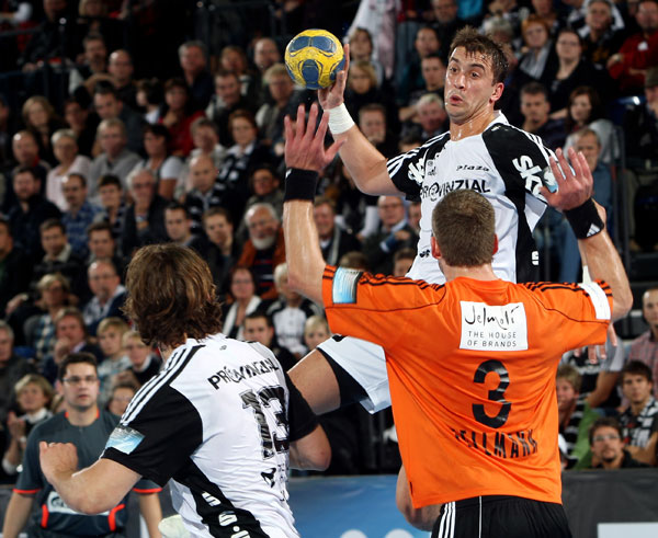 Ein Abend, an dem den "Zebras" alles gelingen sollte. So scheiterte der neunfache Torschütze Christian Sprenger nach einem herrlichen Pass von Thierry Omeyer auf dem Weg zum 21:12 (33.) am guten Arunas Vaskevicius. Sprenger wollte den Litauer mit einem lässigen Heber narren. Klappte nicht. Nur Sekunden später fand Omeyer erneut den National-Rechtsaußen, der diesmal erfolgreich Kunst durch Kraft ersetzte.