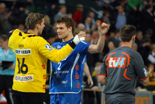 Längst waren auch die TBV-Fans erwacht, die Halle kochte, und die spät erwachte Euphorie übertrug sich sofort auf den Start in die zweite Spielhälfte. Tor um Tor zog Lemgo jetzt davon, Preiß, Hermann, Bechtloff spielten sich in einen Rausch. Kiels Gegenwehr hielt sich in Grenzen, Weltklasse-Torhüter Thierry Omeyer fand keine Bindung, Filip Jicha, beim Sieg in Gummersbach noch 13-facher Torschütze, ging bei seinem Ex-Klub völlig leer aus. Und so schien die Partie beim 28:21 nach 48 Minuten entschieden. Ein Lattenkracher nach Tempogegenstoß von Florian Kehrmann sorgte dann aber für einen Weckruf an den THW. Bei Lemgo ging nichts mehr, Kiel fand ins Spiel zurück und durfte nach dem 30:29 (56.) von Dominik Klein wieder von Punkten träumen. Es war nur ein kurzes Aufbäumen, Kraus und Strobel sorgten für die erneute Drei-Tore-Führung, und als ausgerechnet Kiels zuverlässigster Spieler, Christian Sprenger, den letzten Siebenmeter 32 Sekunden vor dem Abpfiff beim 30:32 am TBV-Tor vorbeisetzte, stand der erneute Lemgoer Triumph über Kiel fest.