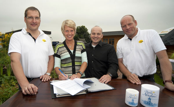 "Der neue Kooperationsvertrag gibt Planungssicherheit und eröffnet uns und gerade unseren jungen Spielern zukunftsweisende Möglichkeiten", freut sich Uli Derad bei der Vertragsunterzeichnung. Mit ihrer Unterschrift besiegelten Uli Derad, Sabine Holdorf-Schust, Gerd Müller und Detlef Schmidt offiziell die weitere gemeinsame Zusammenarbeit für die nächsten vier Jahre.