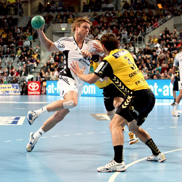 Angriffsreihen die Anfangsphase, während die beiden Welthandballer