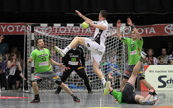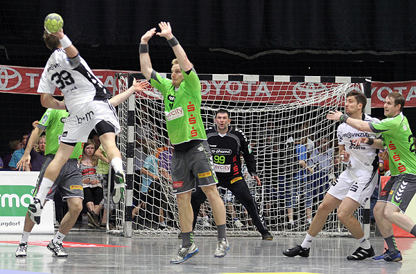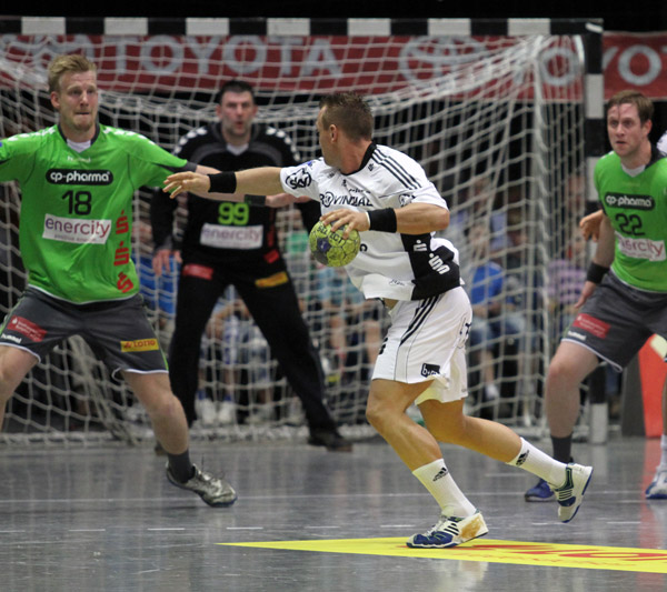 Die Sicherheit kehrte zu den Kielern zurück: Der starke Thierry Omeyer parierte gegen Olsen, und Ilic bediente Ahlm zum 19:17. Als Omeyer dann auch noch einen Gegenstoß Johannsens abwehrte und einen weiten Gegenstoßpass regelgerecht abfing, Andersson das 20:17 markierte und Lundström nach einer Puljezevic-Parade in den Kreis hechtete und den Ball zum 21:17 versenkte, war der THW sieben Minuten vor Schluss plötzlich wieder deutlich vorne. Doch ein Duseltreffer Olsens - sein Wurf prallte vom Innenpfosten gegen den Rücken Omeyers - beendete die neunminütige Torflaute der Gastgeber, die sich nach dem 22:18 Jichas noch einmal zu einem famosen Schlussspurt aufrafften: Olsen und Hallgrimsson verkürzten, und nachdem Andersson bei angezeigtem Zeitspiel an Puljezevic scheiterte und Jurdsz zwei Minuten vor Schluss der 21:22-Anschluss gelang, war zumindest ein Punkt für die wacker kämpfenden Gastgeber wieder in Reichweite. Auch der Treffer Ahlms zum 23:21 65 Sekunden vor der Sirene brachte noch keine Sicherheit, da Momir Ilic wenige Sekunden darauf eine Zeitstrafe bekam. Erst als Thierry Omeyer einen weiteren Wurf Olsens festhielt und Aron Palmarsson sich durch die offensive Deckung der Gastgeber zum 24:21 durchtankte, waren die beiden wichtigen Punkte auf dem Weg zur direkten Champions-League-Qualifikation unter Dach und Fach.