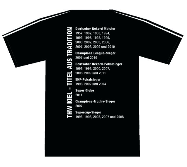 Die Rückseite des Saisonabschluss-Shirts: THW Kiel - Titel aus Tradition