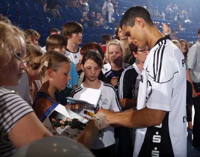Ebenso anstrengend wie die Turnierspiele dürften für die Zebras die Minuten nach der Siegerehrung gewesen sein. Sie zogen sich nur ein frisches Shirt über, dann ging es wieder raus zu den vielen hundert Fans, die auf dem Spielfeld auf ihre Stars warteten. Die ließen sich nicht lange bitten und schrieben solange auf Bällen, T-Shirts, Trikots und Postern, bis alle Fans zufrieden die Heimreise antraten.