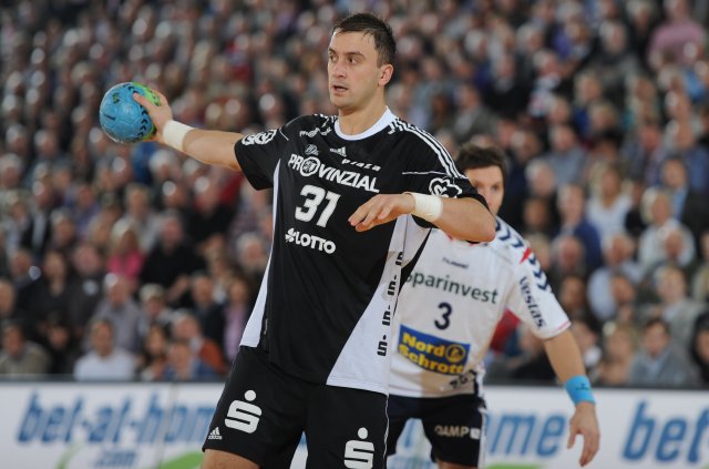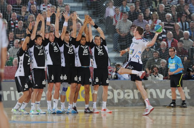 stoppte die THW-Defensive. Holger Glandorf brachte den Freiwurf nach Ablauf der ersten 30 Minuten