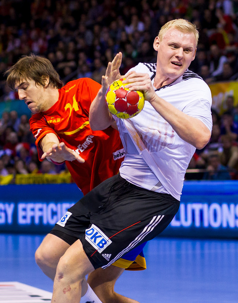 Die Spanier hatten nichts unversucht gelassen, um die Deutschen aus dem Tritt zu bringen. Während sie sich aufwärmten, lief auf dem Videowürfel über ihnen noch einmal der Kantersieg der Gastgeber im Achtelfinale gegen Serbien ab. Doch die Schützlinge von Martin Heuberger zeigten sich unbeeindruckt, auch nach dem Anpfiff. Mit Herz und auf schnellen Beinen traten sie an, in Silvio Heinevetter hatten sie einen guten Rückhalt. Dagegen fand der bullige Arpad Sterbik nicht ins Spiel. Als Michael Haaß durch seine stämmigen Beine hindurch das 7:5 für die Deutschen erzielte, nahm Valero Rivera den Hünen vom Feld. Wie sich am Ende herausstellen sollte, hatte er mit dem relativ unbekannten Jose Sierra den Matchwinner e ingewechselt.