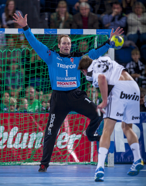 Und auch nach dem dänischen Tor-Debüt war Kiel das spielbestimmende Team, so dass die Gäste bereits in der elften Minute die erste Auszeit nahmen. Eine entscheidende Änderung brachte das nicht. Zumal Kim Andersson, in der bisherigen Saison erfolgreichster Torschütze seines Teams, in seinen Aktionen sehr gehemmt wirkte. Ein paar Fehlpässe, ein halbherziger Versuch aus dem Rückraum, die schlechte Verwertung eines abgefangenen Balles dokumentierten seine Nervosität vor den Zuschauern, die in großer Zahl seinetwegen gekommen waren und vor der Partie in langen Schlangen für ein Andersson-Autogramm angestanden hatten.