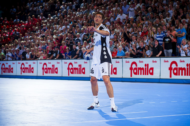 Es war schnell klar, dass der Anpfiff seiner Weltauswahl "3-13" gegen die aktuelle Zebraherde nicht pünktlich um 20.15 Uhr beginnen würde. Ahlm betrat die Halle allein. Die 10000 Zuschauer erhoben sich, um einen Spieler zu feiern, der nicht nur zehn Jahre lang erfolgreich das THW-Dress getragen hatte. Sie verneigten sich auch vor einer großen Persönlichkeit.