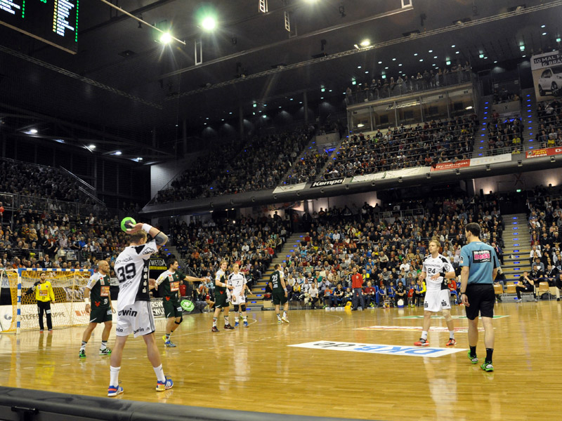 des SC Magdeburg mit 28:26. Dank der aufgebauten Zusatztribüne