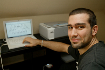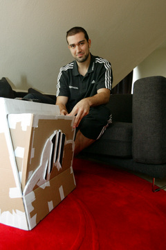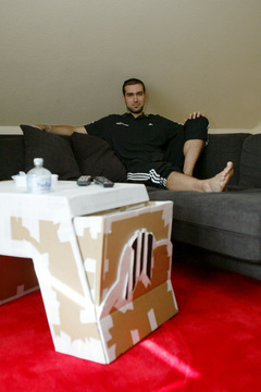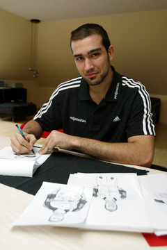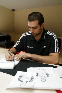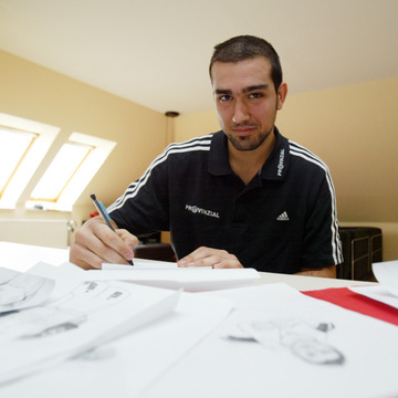 | Igor Anic: Ein selbstgebauter Zebra-Tisch. | Igor Anic: Ein selbstgebauter Zebra-Tisch. | Igor Anic beim Zeichnen. | Igor Anic beim Zeichnen. | |||