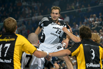 | Sigurdsson attackiert Szilagyi. | Magdeburgs Grzegorz Tkaczyk wird von Nikola Karabatic attackiert. Links Viktor Szilagyi. | Magdeburgs Grzegorz Tkaczyk wird von Viktor Szilagyi und Nikola Karabatic attackiert. | Viktor Szilagyi jubelt über den Rekordsieg. | |||