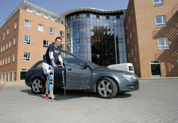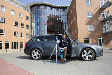 | Noch nicht wieder mobil und auf den Fahrdienst seiner Freundin angewiesen: Der Österreicher Viktor Szilagyi steigt nach seinem Arzt-Besuch auf dem Beifahrersitz seines Audis ein. | Viktor Szilagyi verlässt nach einem Arzt-Besuch das Mare Klinikum in Kronshagen. | Viktor Szilagyi verlässt nach einem Arzt-Besuch das Mare Klinikum in Kronshagen. | THW-Mannschaftsarzt Dr. Frank Pries erklärt Viktor Szilagyi, der auf einer Behandlungsliege liegt, anhand eines Modells die Verletzung im Knie. | |||